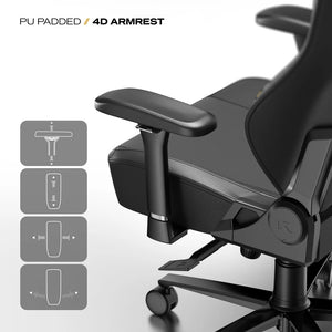 Find your perfect position with versatile 4-way adjustability. The PU-padded armrests can be moved Up/Down, Left/Right, Forward/Backward, and Swiveled (up to 45°) to support your elbows and reduce shoulder strain during intense gameplay.