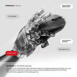 CYBEART | Artemis 52g Ultra-light Wireless Gaming Mouse | Dual 300mA Hyperswap™ Battery | 24,000 DPI | 1K Polling Rate | 80M Kailh Switches | Tri Mode (Black)