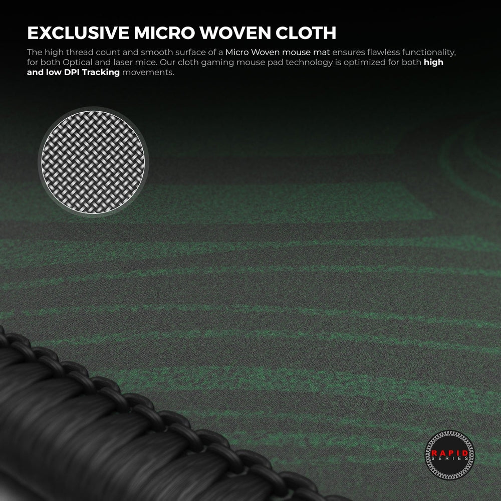 - Exclusive Micro-Woven Spill-proof / Water-proof Cloth Surface - Optimized for both Laser & Optical mice and high & low DPI tracking movements.